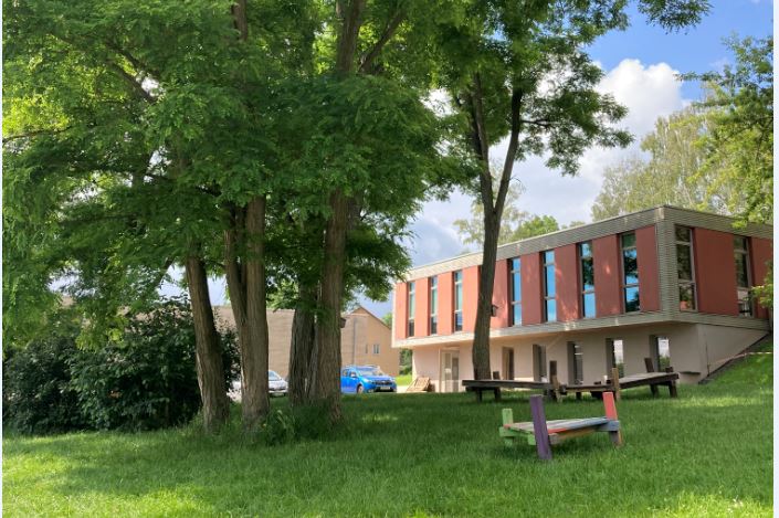 Beide Häuser sind barrierefrei. Im Untergeschoss des Hauses 2 befindet sich der Musikraum. Die Werkstatt für Holz und Ton ist im Untergeschoss von Haus 3.